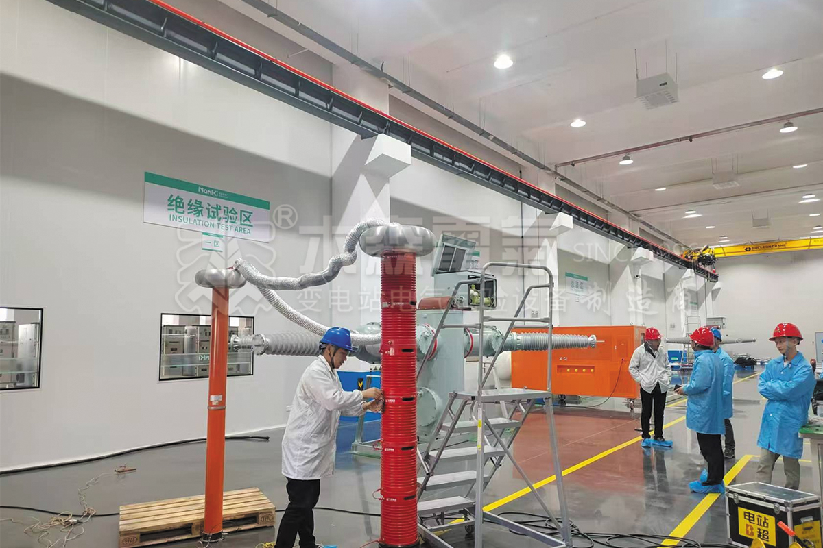 抵達現場后,工作人員引領我們前往試驗地點,試驗地點在廠內車間里,車間是無塵車間,我們進入前佩戴好了相關衣服、鞋套,并在除塵間進行了除塵。在測量現場,運維部同事分工明確、配合默契。他們有的負責儀器操作,有的負責數據記錄,還有的負責現場安全監督,確保整個測量過程的有序進行。GIS試驗通常包括以下幾個方面: 絕緣性能試驗(主要檢測GIS的絕緣強度,包括雷電沖擊試驗、工頻耐壓試驗)、局部放電試驗、 機械性能試驗、溫升試驗。
