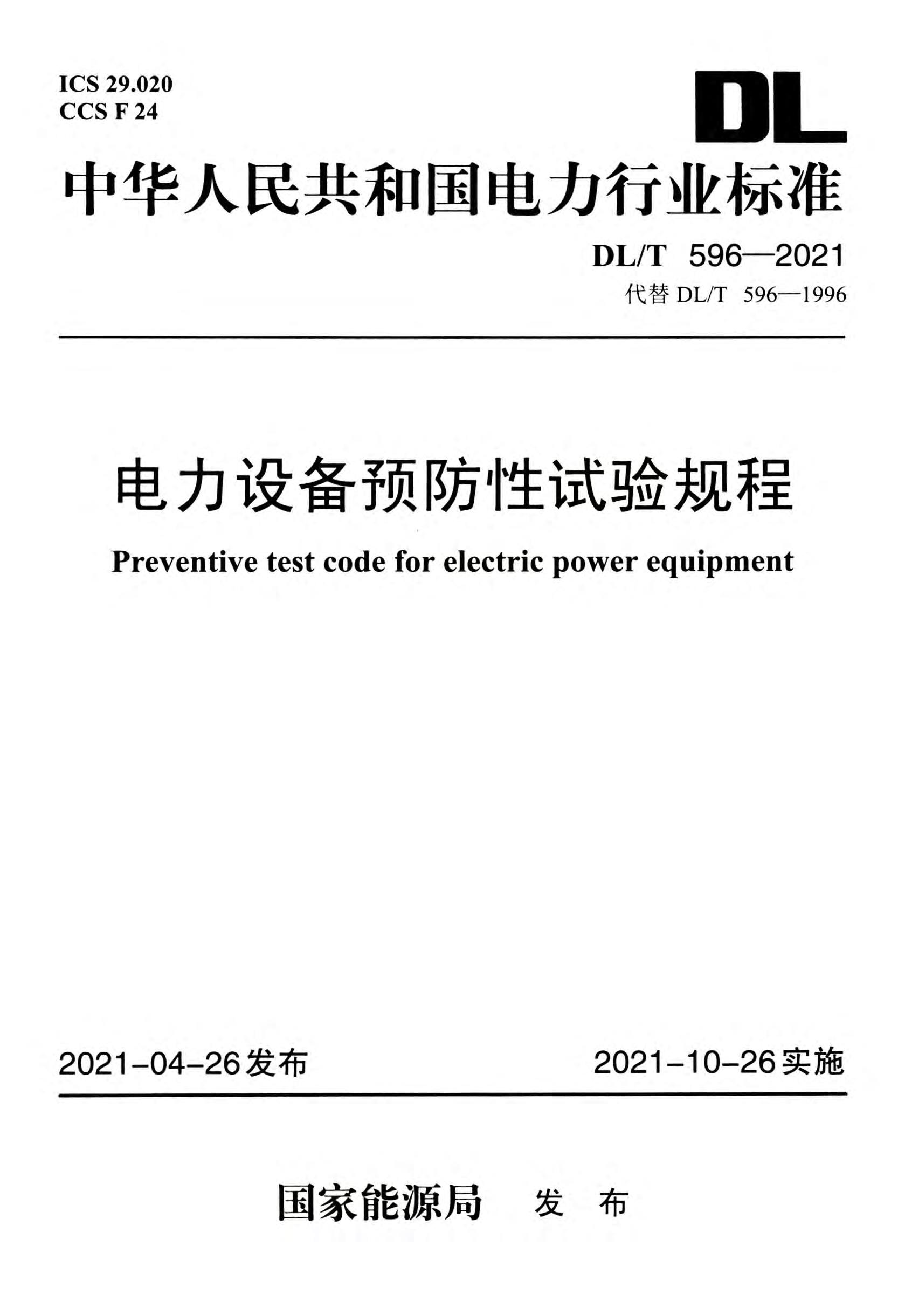 DL/T 5293-2013 電氣裝置安裝工程 電氣設(shè)備交接試驗(yàn)報告統(tǒng)一格式 本標(biāo)準(zhǔn)是根據(jù)《國家能源局關(guān)于下達(dá)2009年第…批能源領(lǐng)域行業(yè)標(biāo)準(zhǔn)制(修)江讓劃的通知1》(國能科技(2009)1